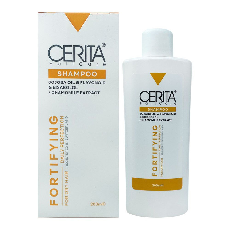 شامپو تقویت کننده و ضد ریزش سریتا مدل Fortifying مناسب برای موهای خشک، حاوی عصاره نعناع فلفلی و روغن جوجوبا می باشد، بنابراین سبب ترمیم موهای آسیب دیده و رنگ شده می شود و ریشه مو را تقویت می کند. این شامپو باعث بالا رفتن جریان خون در سر می شود . این محصول علاوه بر تنظیم PH پوست سر، ترشح چربی را کنترل کرده و لطافت و شادابی به مو می بخشد.